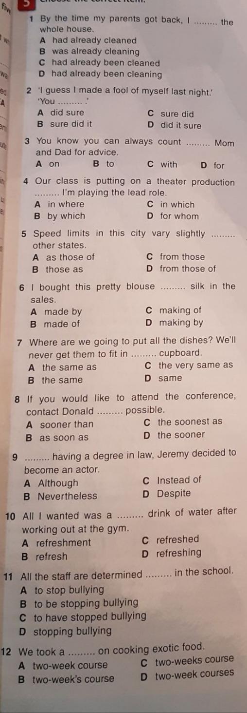 12 We took a ..........on cooking exotic food. C two-weeks course