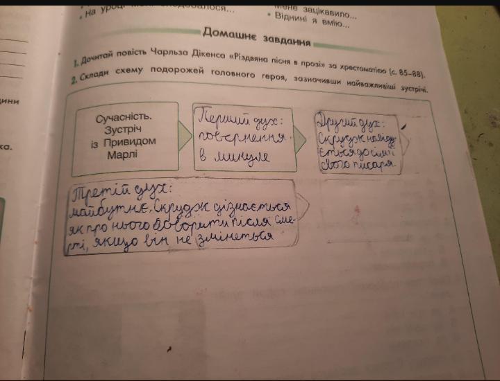 Склади схему подорожей головного героя зазначивши найважливіші зустрічі.ТВІР різдвяна пісня в прозі.