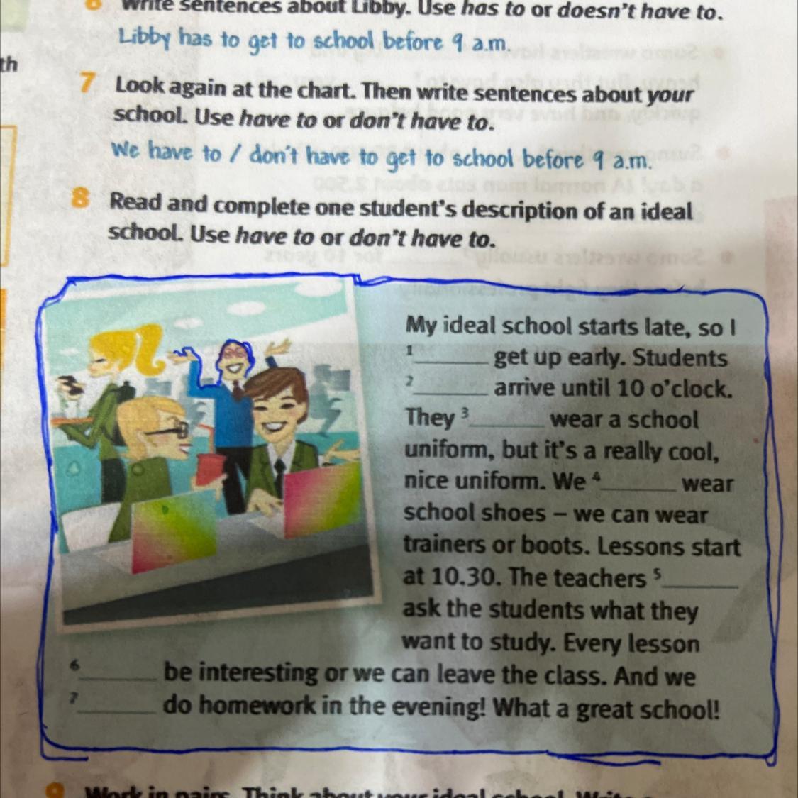8 Read and complete one student's description of an ideal