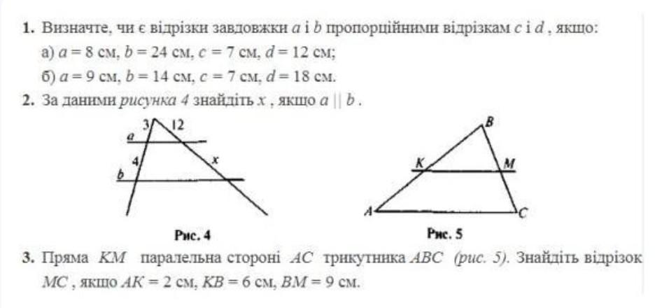 Визначте, чи є вiдрiзки завдовжки а i ь пропорційними відрізкам сid, якщо: а = 9 см, b = 14 см, с = 7 см, d