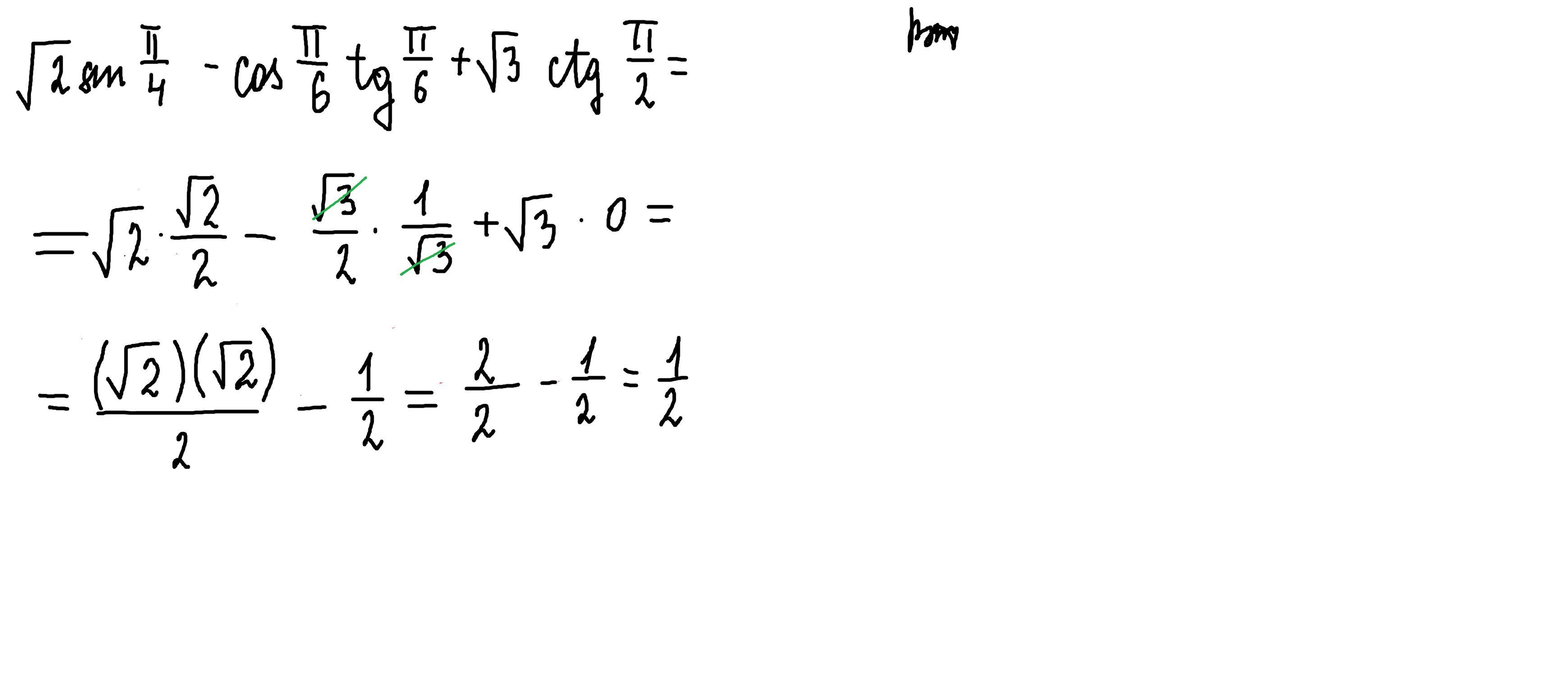 внизу есть таблица значений тригонометрических функций,смотрим и находим