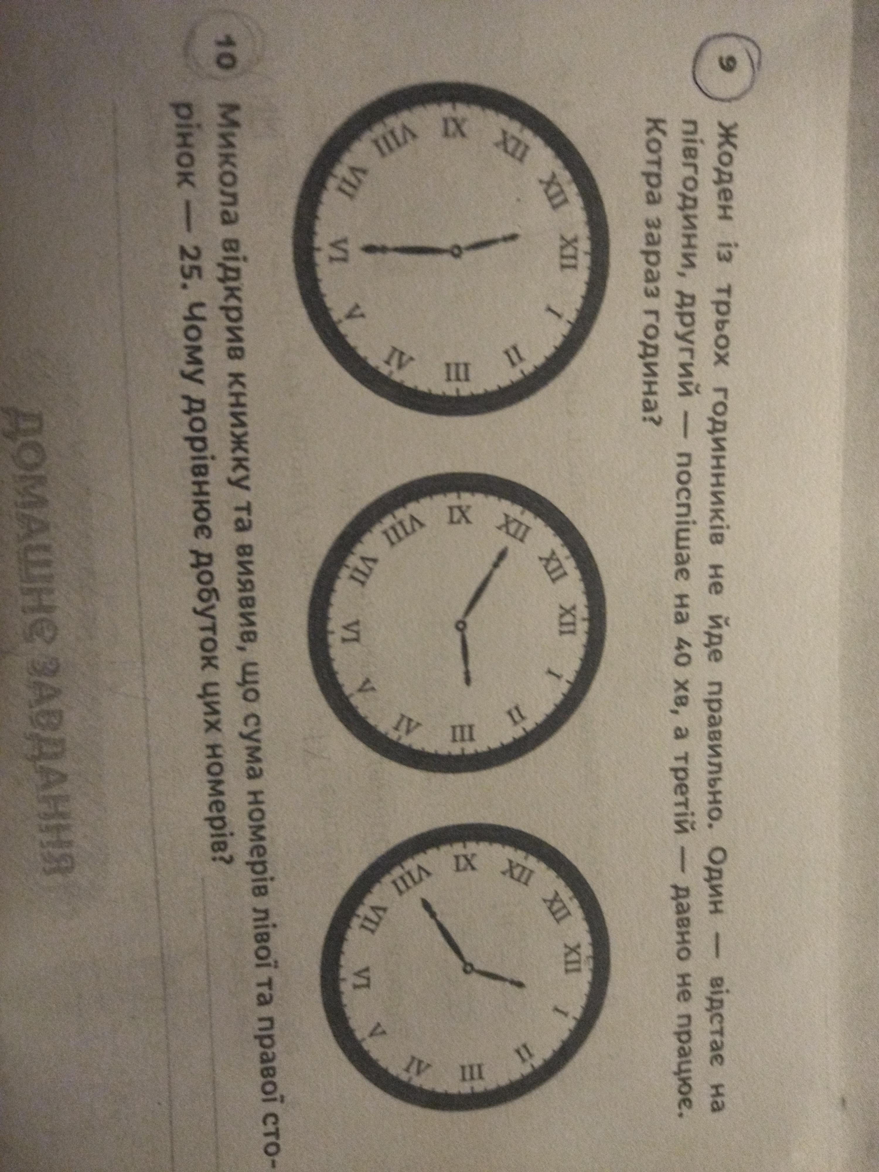 перший відстає на півгодини, а третій поспішає на 40 хв.