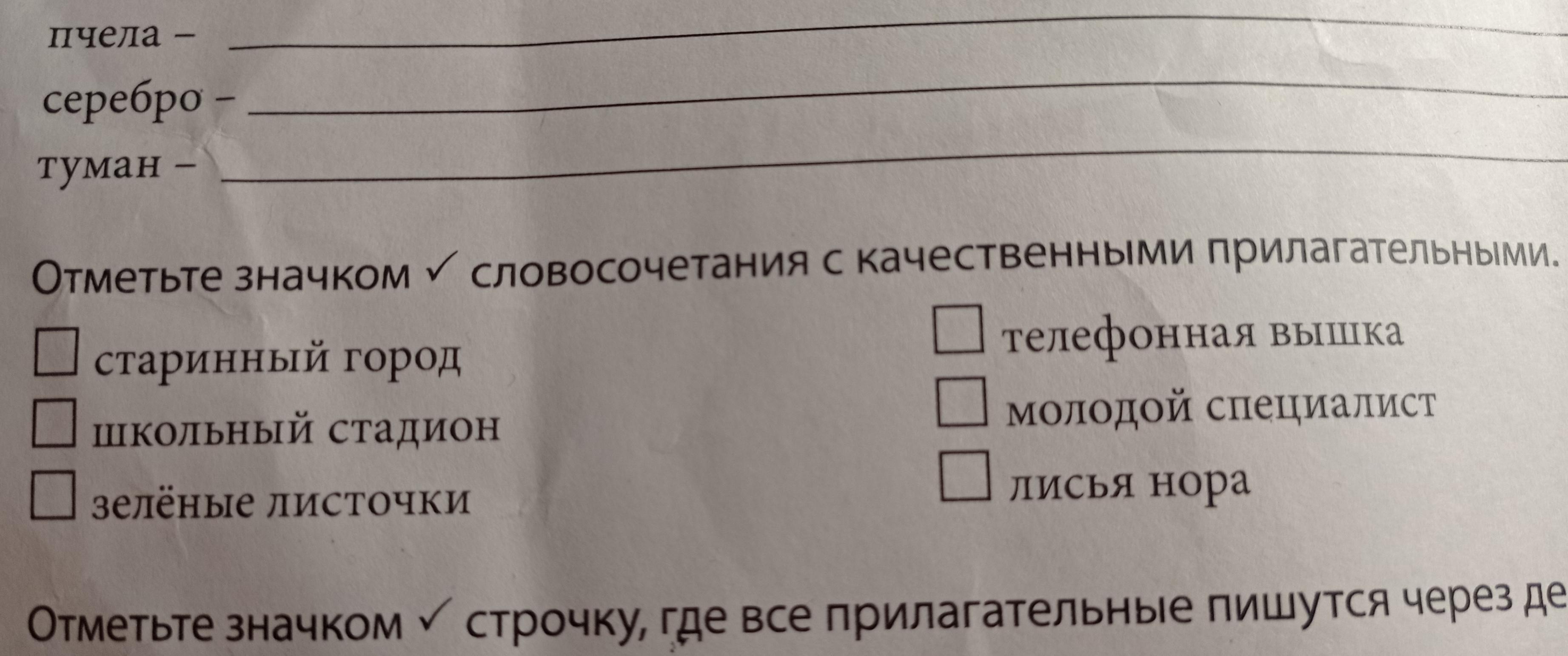 Отметьте значком ✓ словосочетания с качественными прилагательными помогите пожалуйста