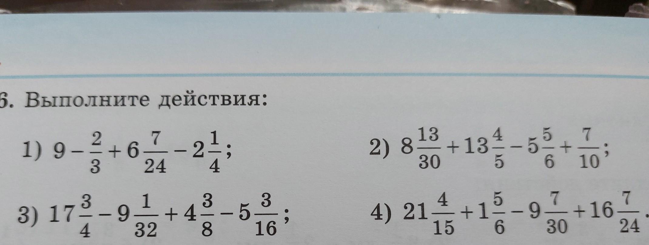 196. Выполните действия: 2 1) 9- - +6 3 3 7 2 24 4 1 3) 172-94-5 +4 32 16 13 2) 8 + 30 13 14-550 7 10 4 5 4) 21 +1-9+16 7 15 30 24. пж фото