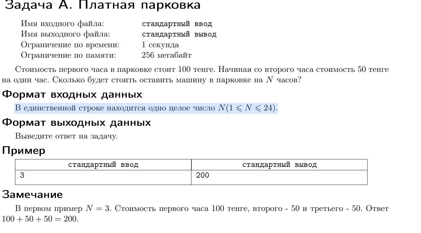 c++ прошу помочь. Стоимость первого часа в парковке стоит 100 тенге. Начиная со второго часа стоимость 50 тенге