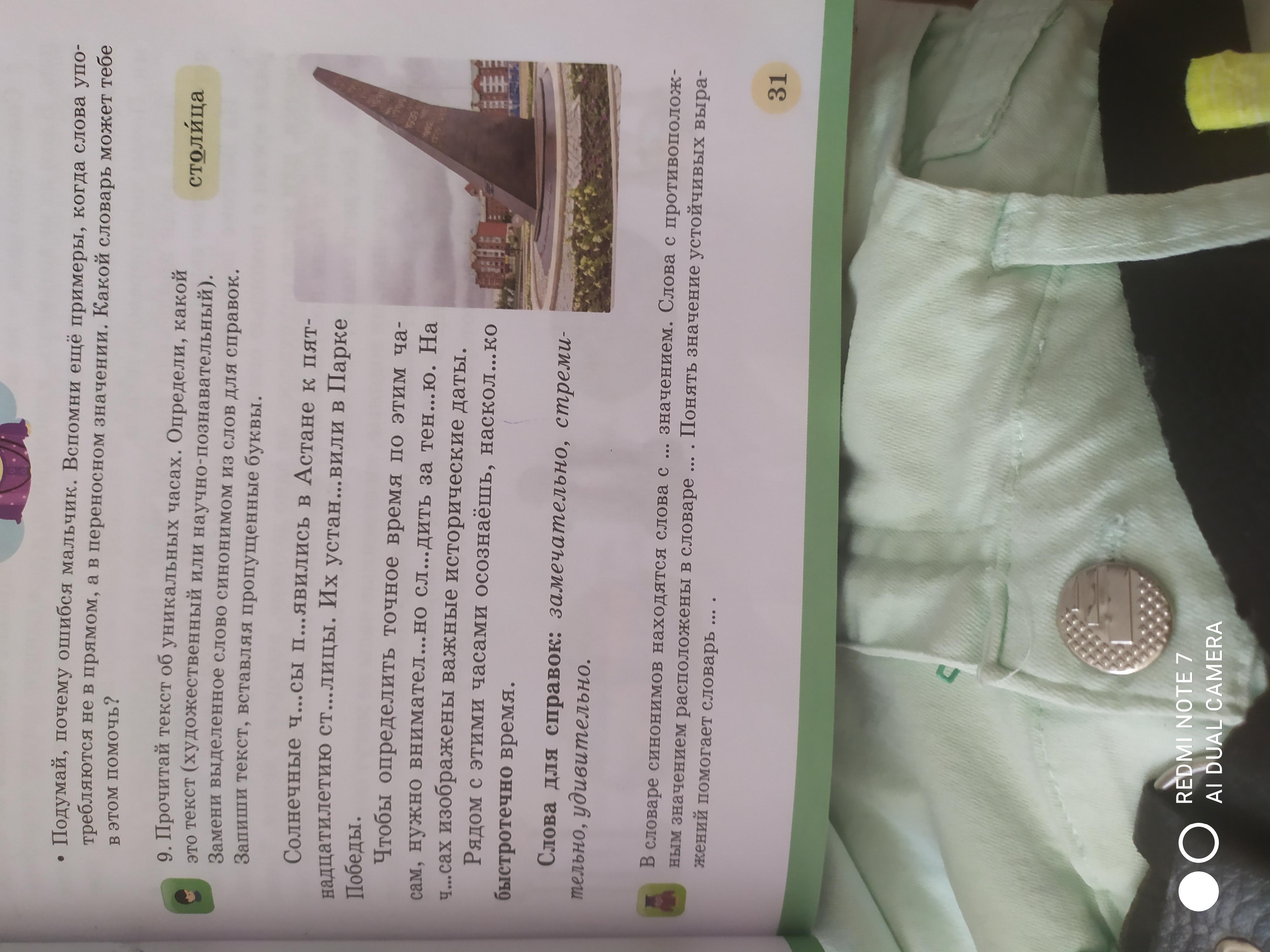 Прочитай текст об уникальных часах.Определи,какой это текст(художественный или научно-познавательный). Замени выделенное слово(быстрочено) синонимом из слов для справок.Запиши текст,вставляя пропущенные буквы. (Текст на фото) Слова для справок: замечательно, стремительно, удивительно.Дам 15 баллов