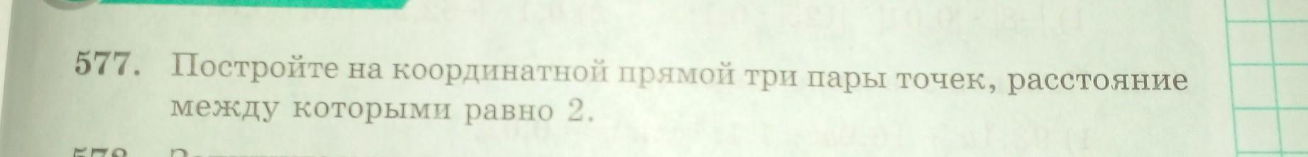 577. Постройте на координатной прямой три пары точек, расстояние между которыми равно 2