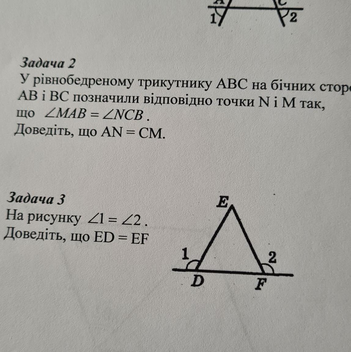если угол 1 и 2 равны, то тогда и угол Д Равен Ф
