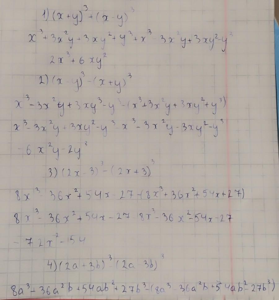 (х³ - 3х²у + 3ху² - у³) - (х³ + 3х²у + 3ху² + у³) =