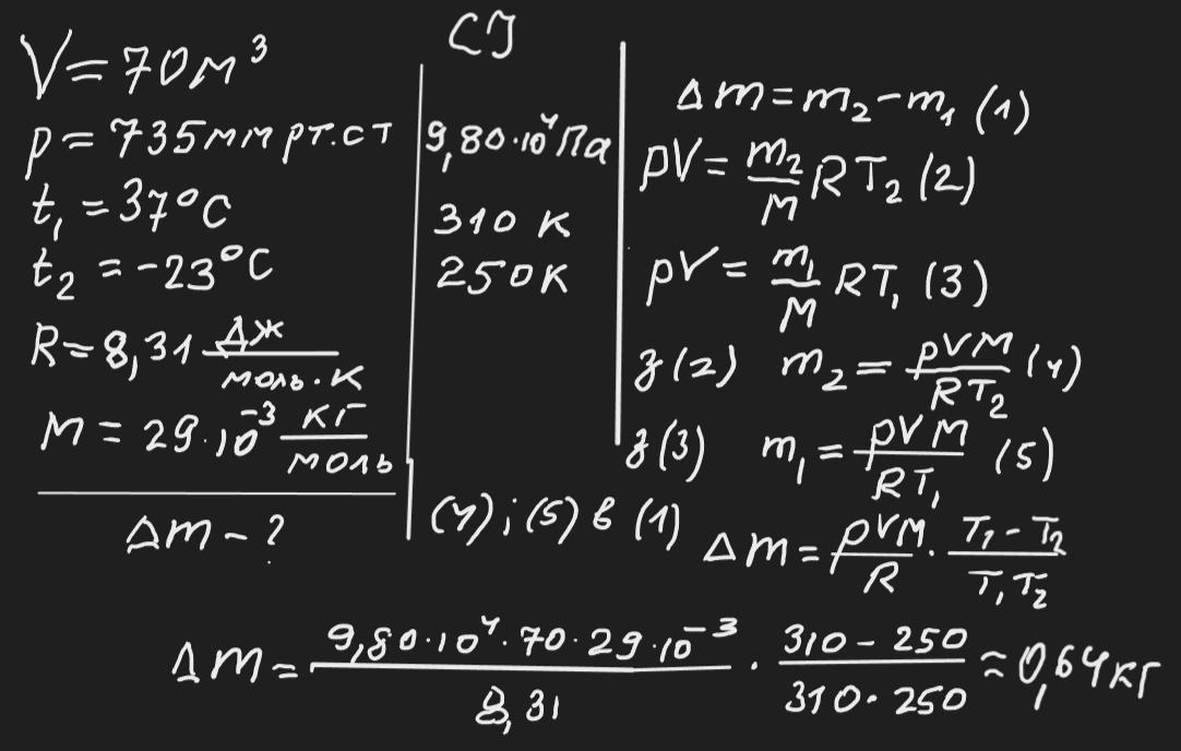 Чому дорівнює різниця мас повітря, яке заповнює приміщення об’ємом 70м ^3
