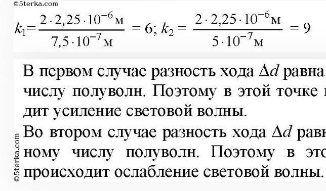 В какую-то точку поля пришли два когерентных световых удара. Расстояние между ними 4 мкм. Если длина волны 1,33 мкм, каков результат интерференции в этой точке?