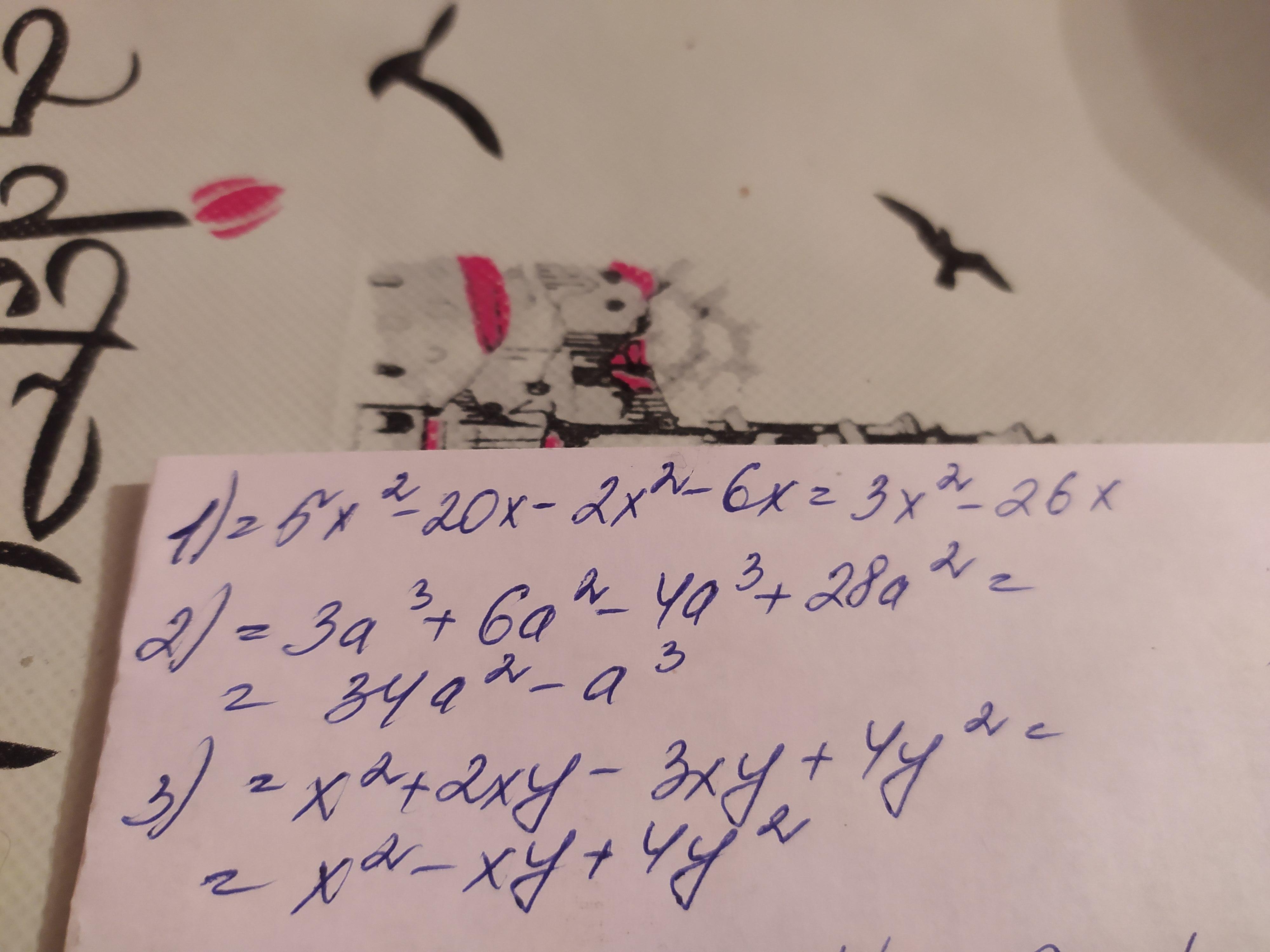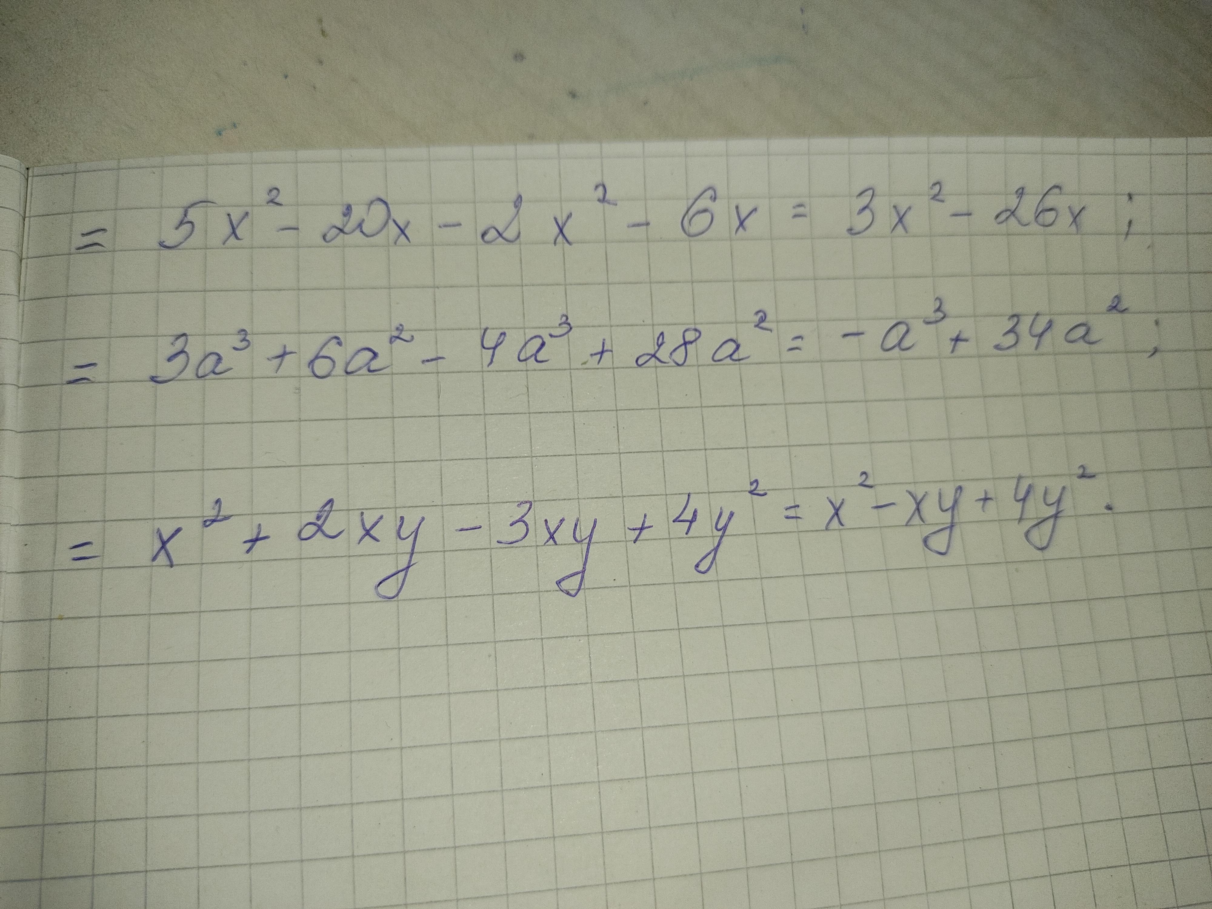 преобразуйте в многочлен стандартного вида выражение 5х (х-4) -2( х2+3х), 3a(a²+2a)-4a(a²-7a),x(x+2y)-y(3x-4y),