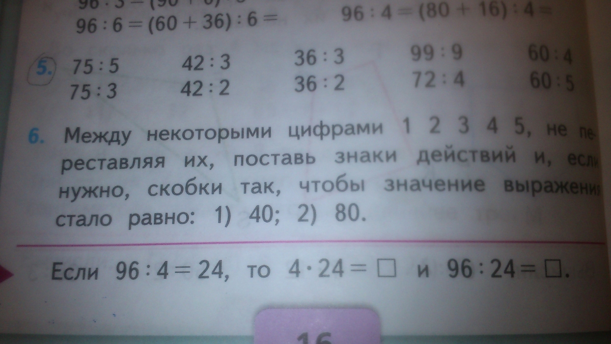 между некоторыми цифрами 12345 не переставляя их поставь знаки действий и если надо скобки так чтобы значение выражения стало равно 1)40 2)80
