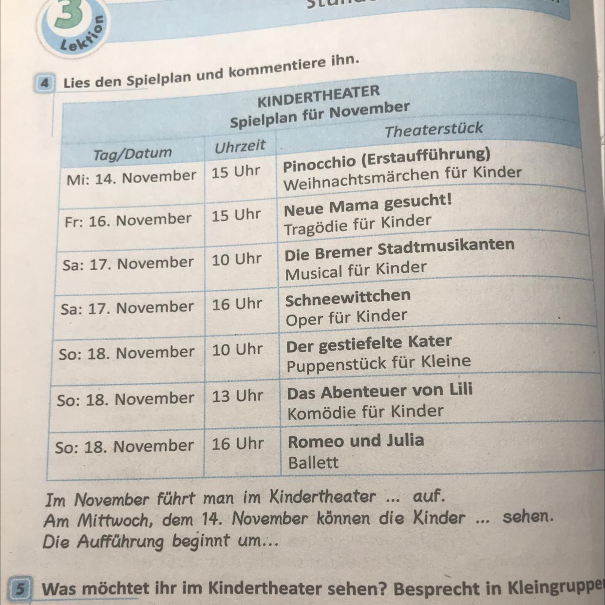 4. Am Samstag, dem 17 November können die Kinder Oper gucken. Das Oper heißt "Schneewittchen".Diese Vorstellung beginnt um 16 Uhr.