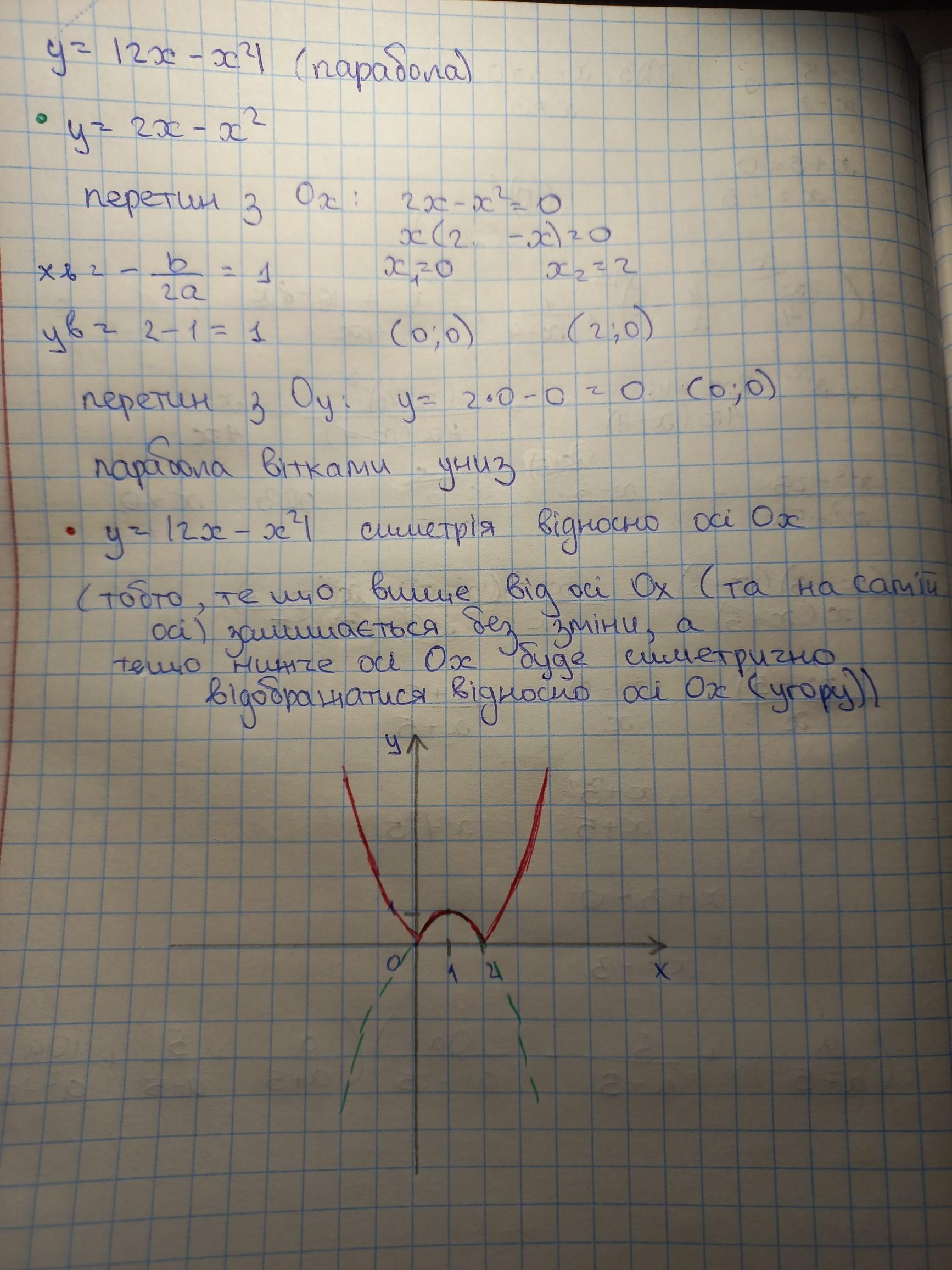 зелений графік, це початковий графік параболи, тобто без симетрії