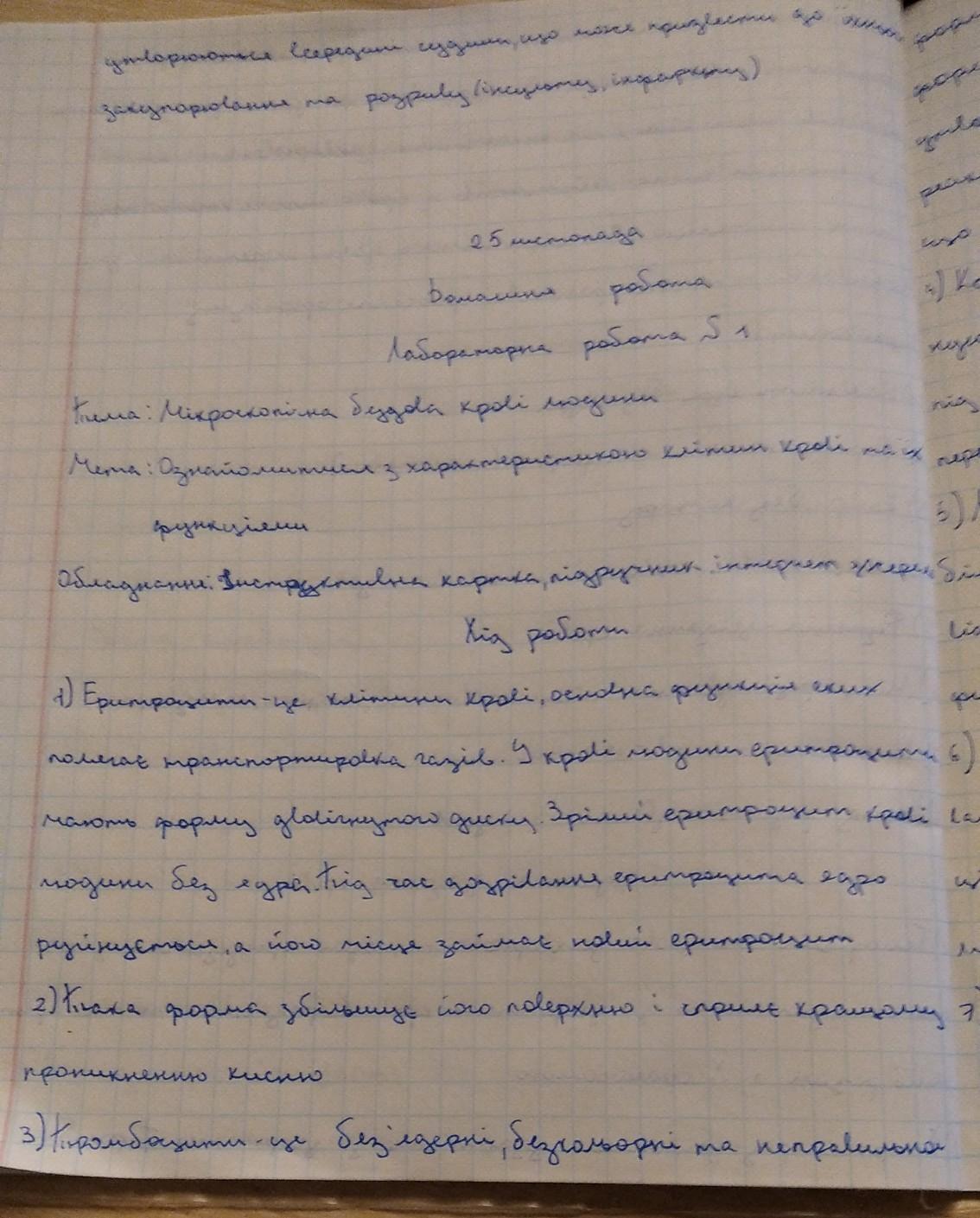 Лабораторна робота №1: Мікроскопічна будова крові людини. Мета роботи: ознайомитися з характеристикою клітин крові та їх функціями. Обладнання: інструктивна картка, підручник, інтернет джерела