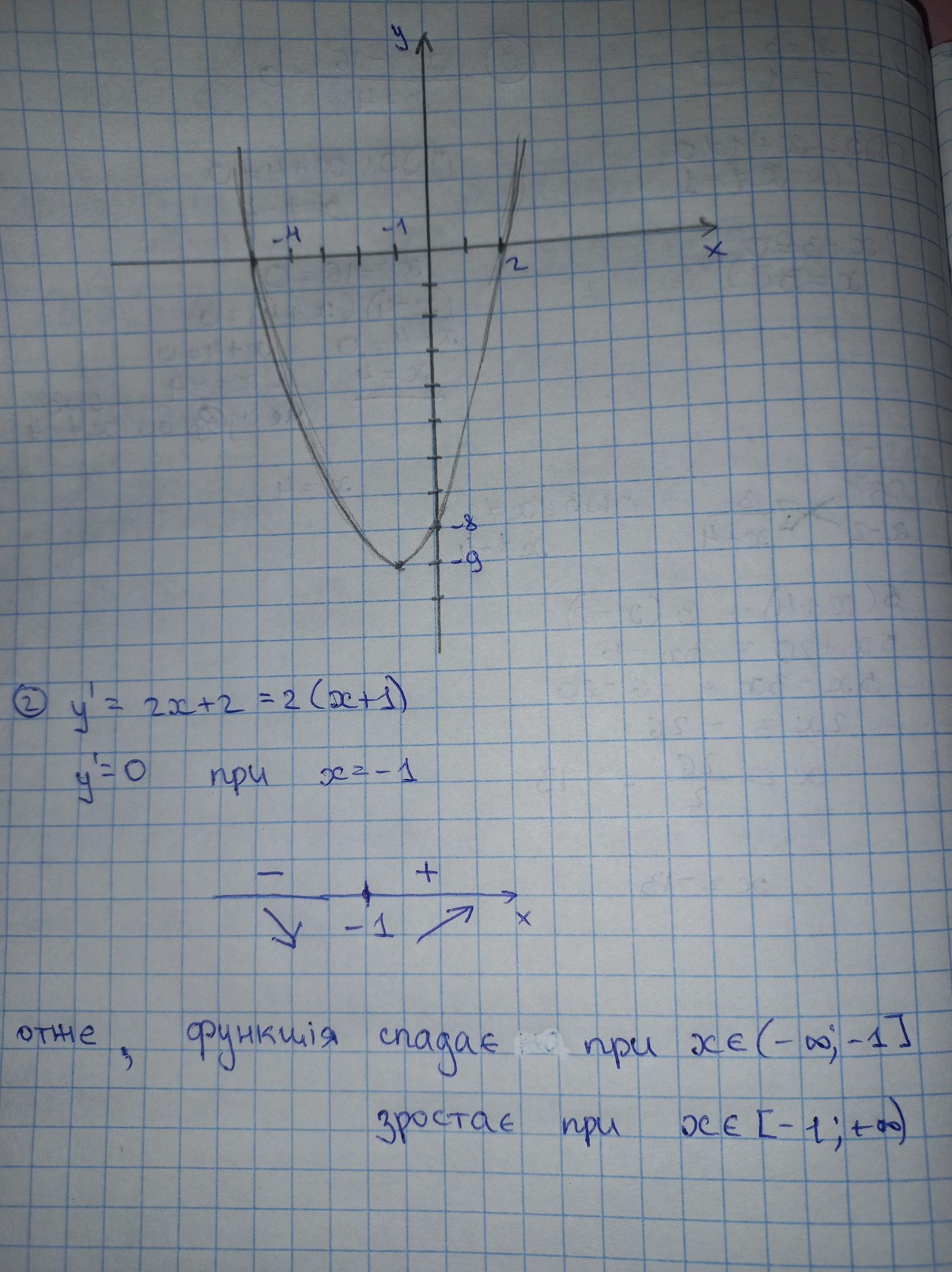 2) промiжки зростання та спадання функції.