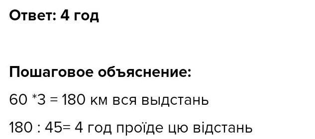 Мотоцикліст відстань від села до міста долає за 3 години зі швидкістю 60 км/год.За який час він пройде цю відстань зі швидкістю 45км/год.