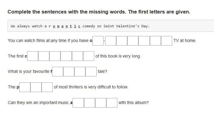 Complete the sentences with the missing words. The first letters are given.