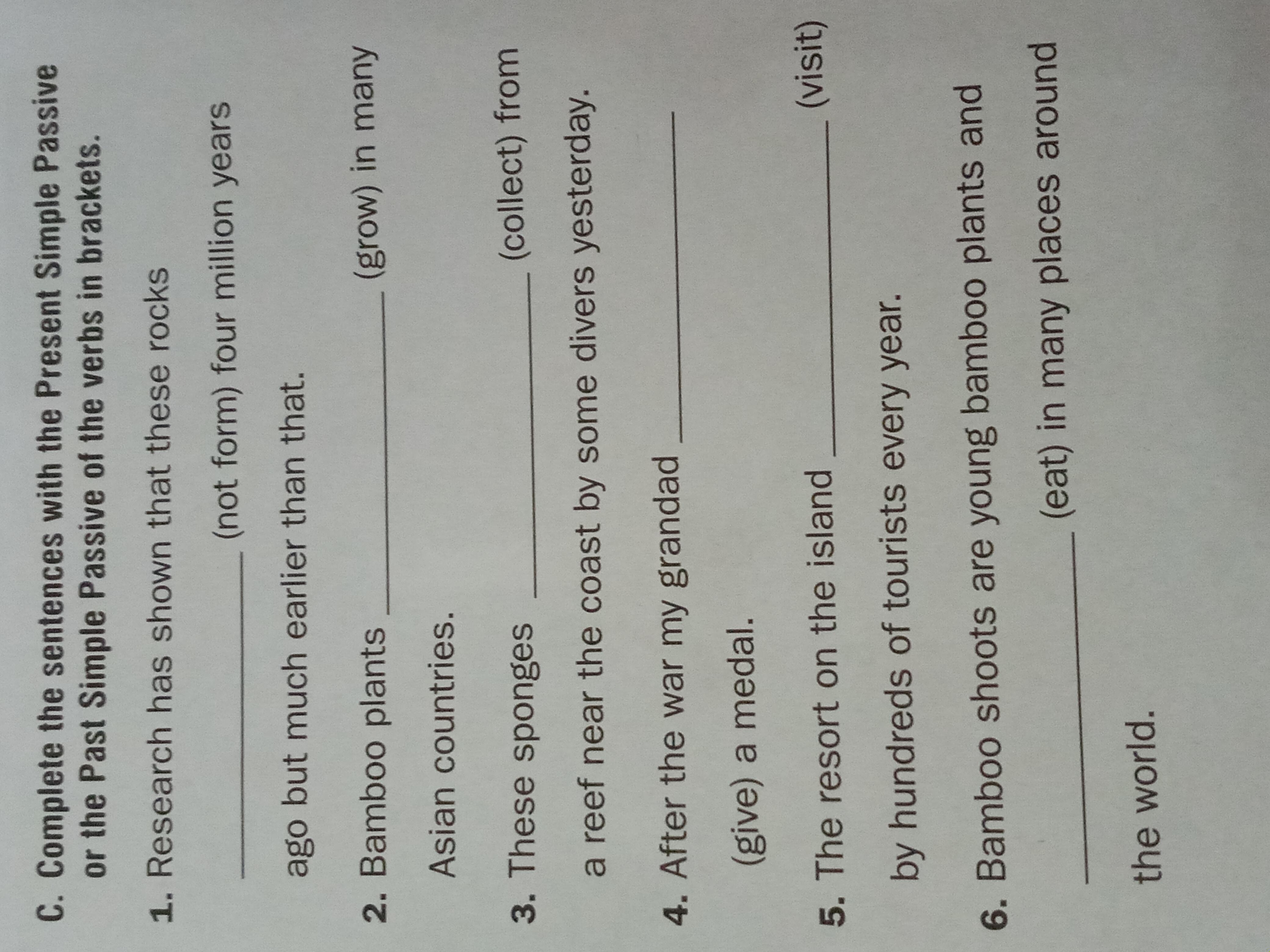 1. didn't form 2.grows 3. collected 4. gave 5.visited 6.ate