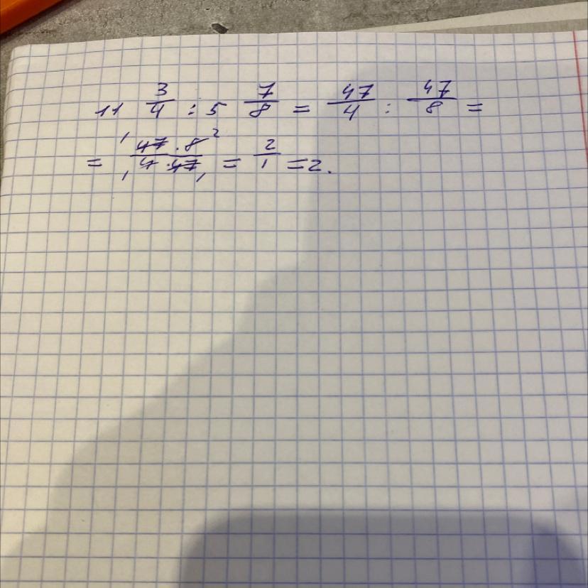 11 ¾ : 5⅞ = 47/4 : 47/8 = 47/4 • 8/47 = 2