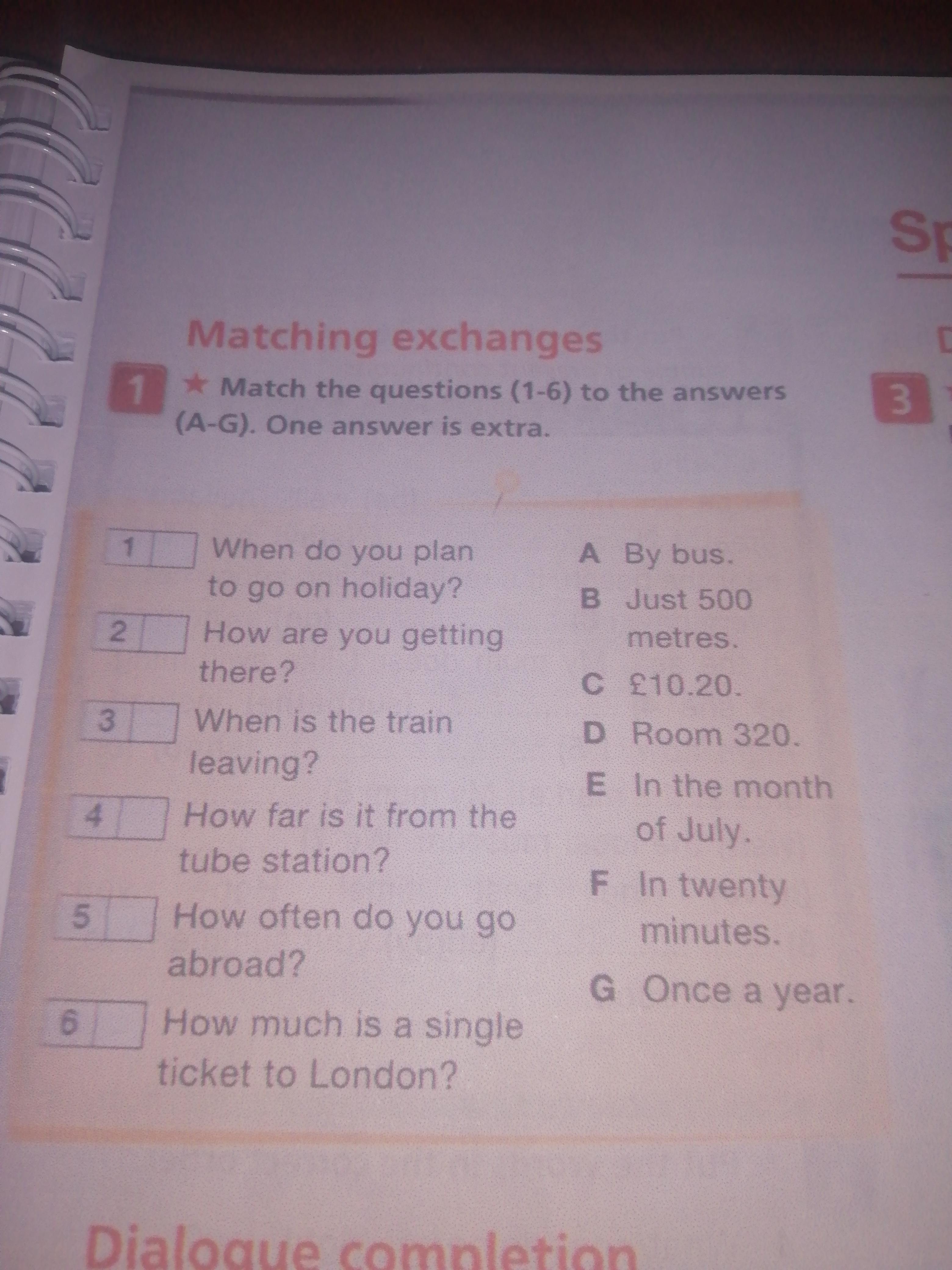 Match the questions (1-6) to the answers (A-G). One answer is extra.