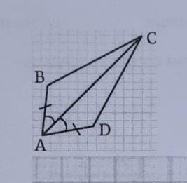 треуголники имеют общую секущую АC, а значит если ВА=AD,а угол ВАС= углу BAD, тогда треугольники равны за первым признаком равенства ( две равные линии и угол между ними)