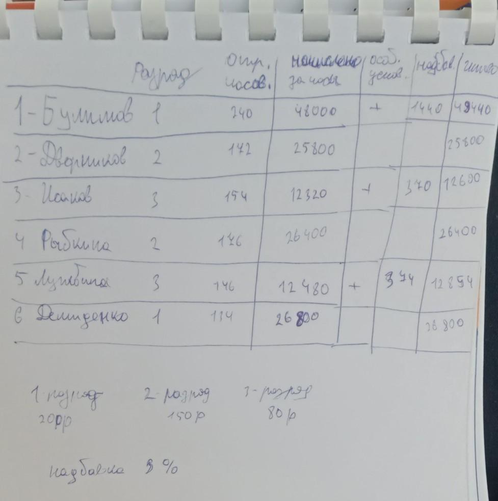 Бригада рабочих выполняла работы на условиях почасовой оплаты в соответствии тарифами почасовой оплаты труда работника соответствующего разряда: 1-й разряд – 200 руб./час., 2-й разряд – 150 руб./час., 3-й разряд – 80 руб./час.