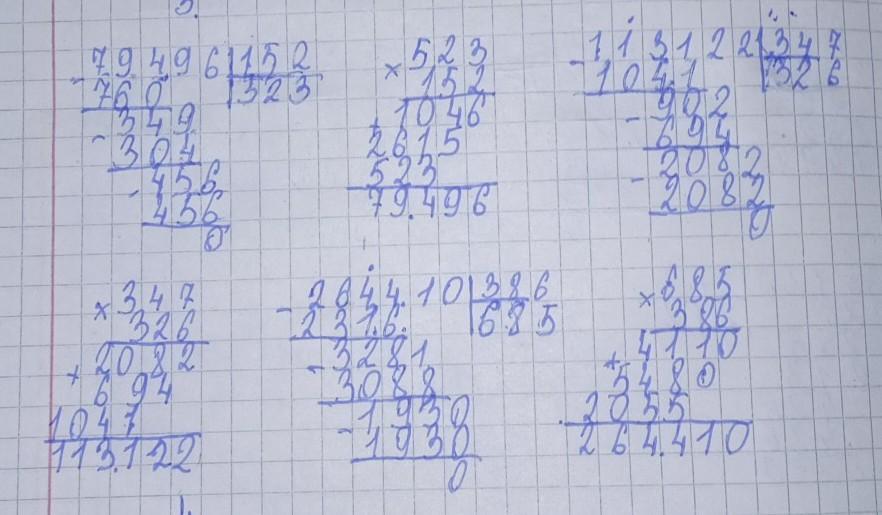 рок 56 • Алгоритм умножения и деления на трёхзначное число 3 Вычисли с проверкой. Составь верные неравенства. 79 496:152 113 122: 347 264 410 : 386 столбиком