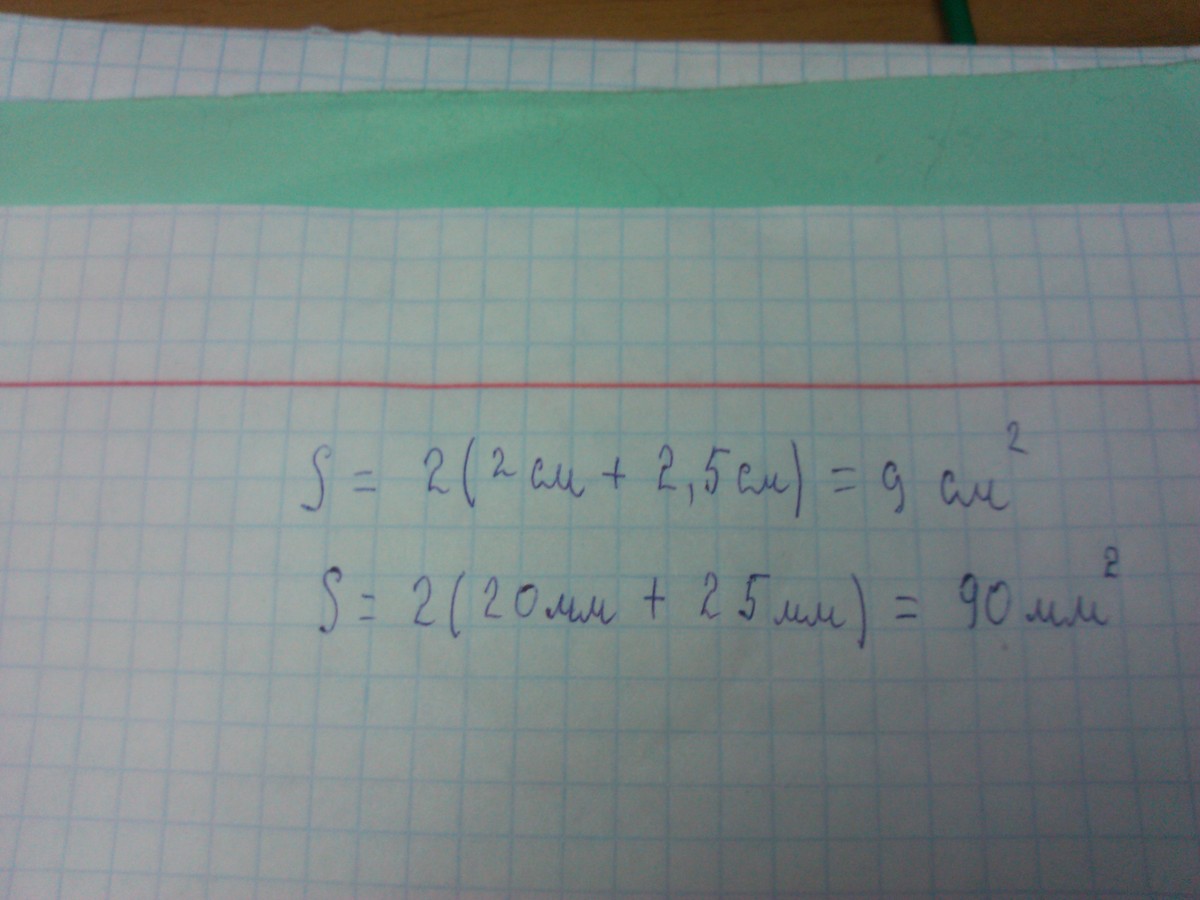 Сторона прямоугольника 2см и 2.5см.вычисли площадь прямоугольника в квадратных сантиметрах и в квадратных миллиметрах