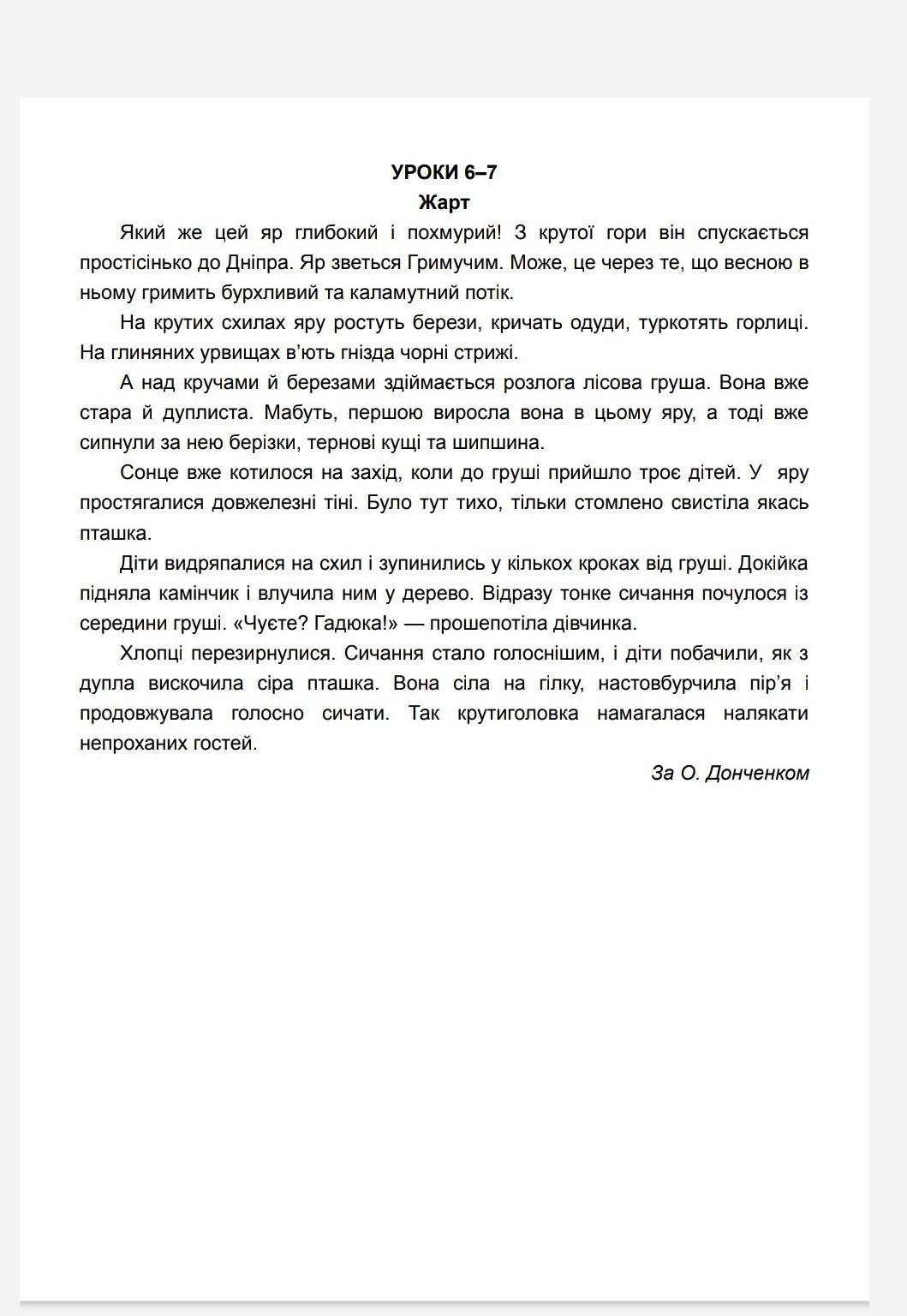 Який же цей яр глибокий та похмурий! З крутої гори він спускається простісінько до Дніпра. Яр зветься Гримучим. Може, це через те, що весною у ньому гримить бурхливий та каламутний потік.