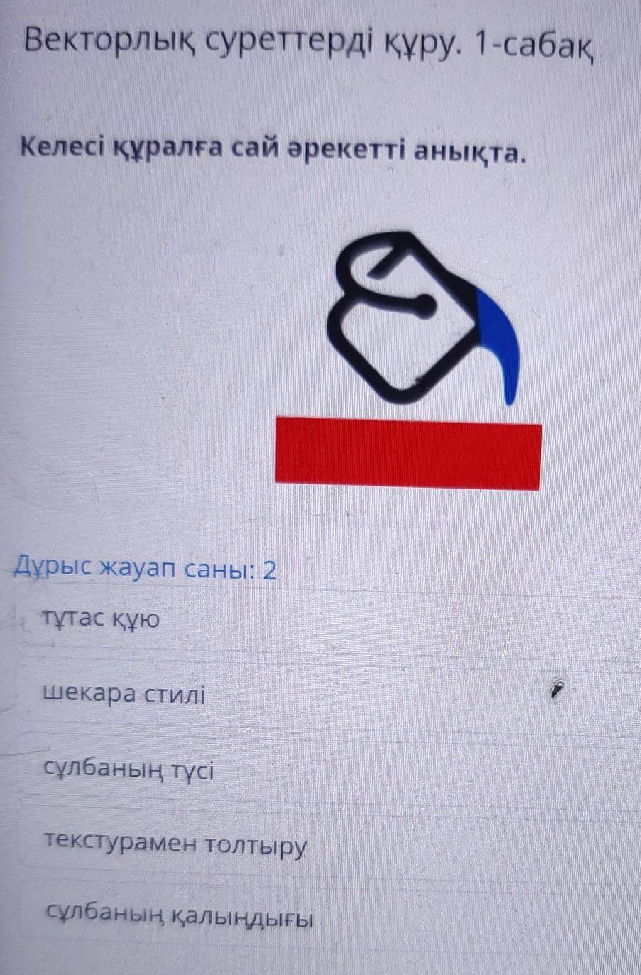 Келесі құралға сай әрекетті анықта. Дұрыс жауап саны: 2 тұтас құю шекара стилі сұлбаның түсі текстурамен толтыру сұлбаның қалыңдығы (5-9класс)