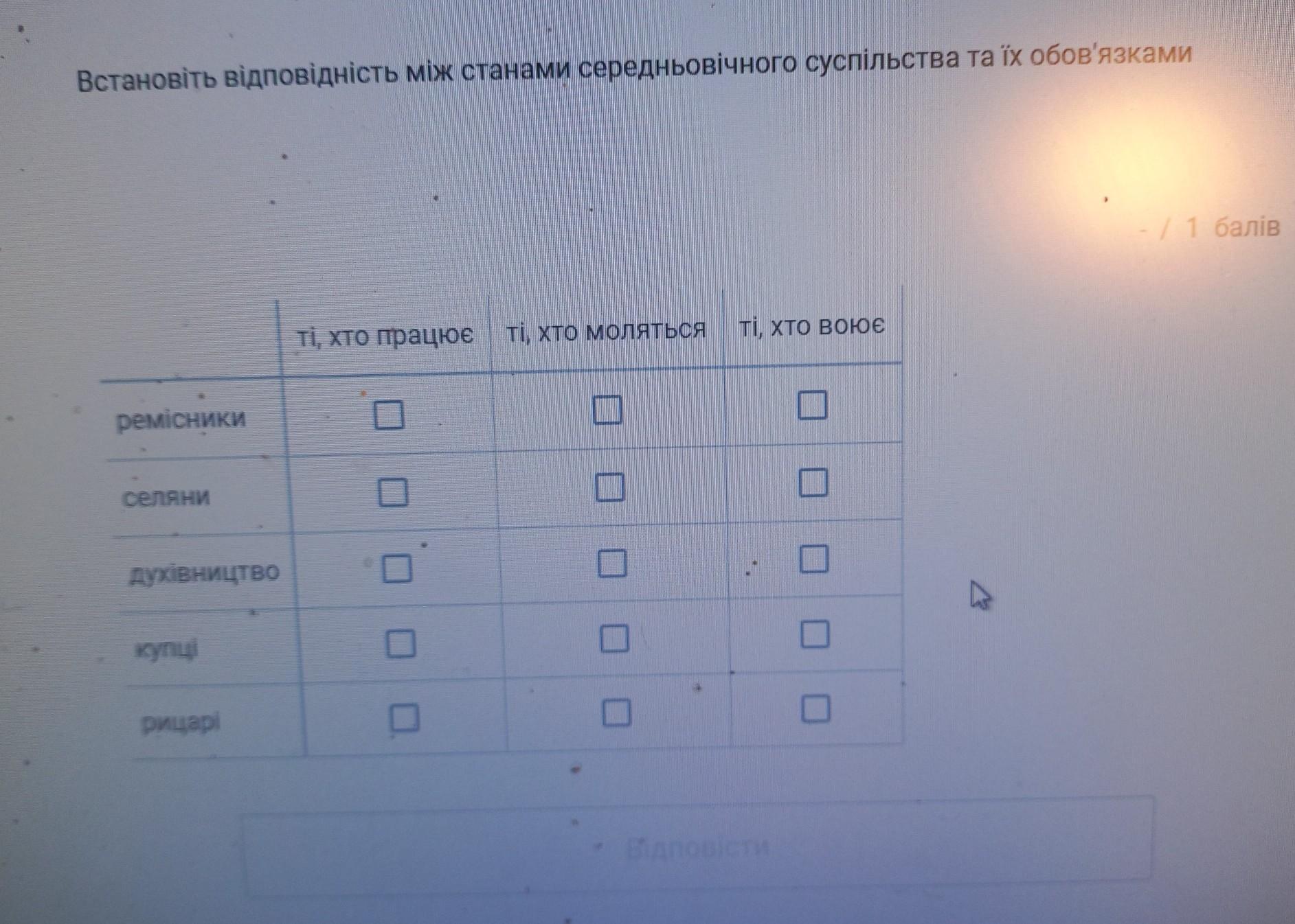 Ответ:ремесляник працюэ , селяни моляться рицари воюють духовництво моляться, купци наверное працюють