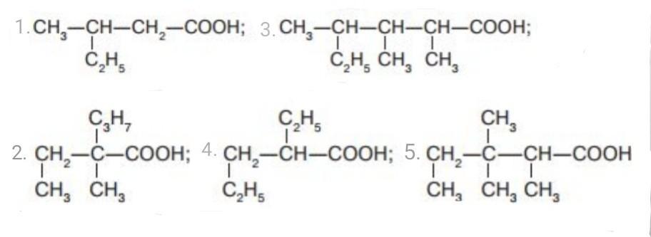 16. ДАЙТЕ НАЗВАНИЯ СТРУКТУРНЫМ ИЗОМЕРАМ НАСЫЩЕННЫХ ОДНООСНОВНЫХ КАРБОНОВЫХ КИСЛОТ ПО СИСТЕМАТИЧЕСКОЙ НОМЕНКЛАТУРЕ: