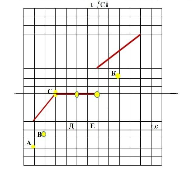 В морозний зимовий день учень заповнив банку снігом заніс її в кімнату. На рисунку показано графік залежності температури снігу від часу. Яка літера відповідає тому часу коли половина снігу розплавиться? А) точка А. Б) точка С. В) точка Д. Г) точка К. спасибо
