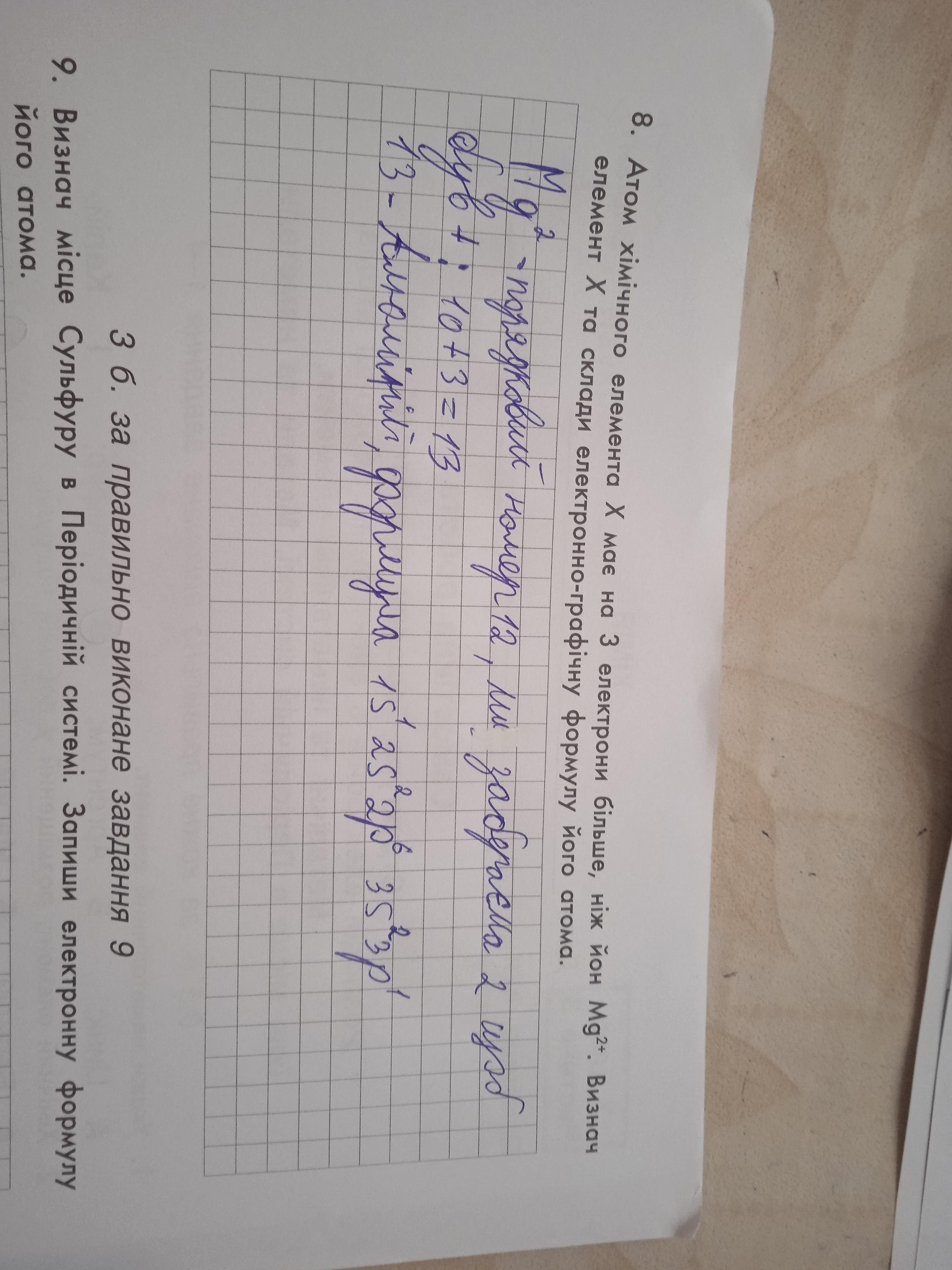 8. Атом хiмiчного елемента Х має на 3 електрони більше, ніж йон Mg?Визнач