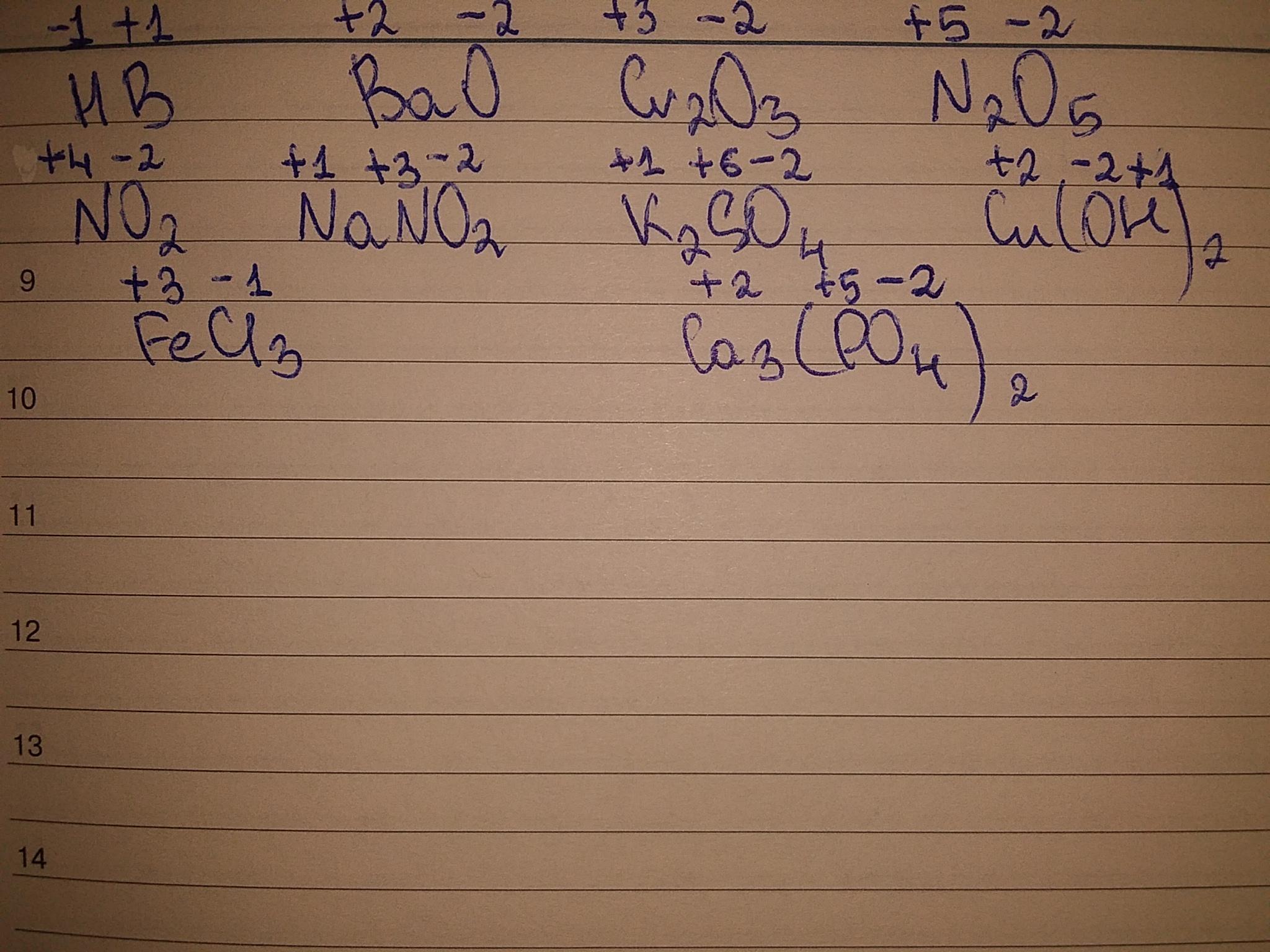 Обчисліть ступені окиснення елементів у сполуках: HB, BaO, Cr2O3, N2O5, NO2, NaNO2, K2SO4, Cu(OH)2, FeCl3, Ca3(PO4)2