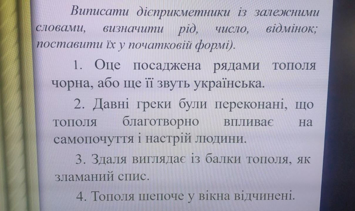 3. Здаля виглядає із балки тополя, як зламаний (чол. р., Н. в., одн., поч.. ф. — зламаний) спис.