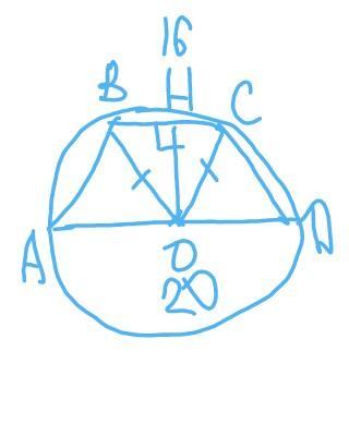 2. Обчисли площу рівнобедреної трапеції, основи якої дорівнюють 16 см і 20 см, якщо відомо, що центр кола, описаного навколо трапеції, розташований на більшій основі.