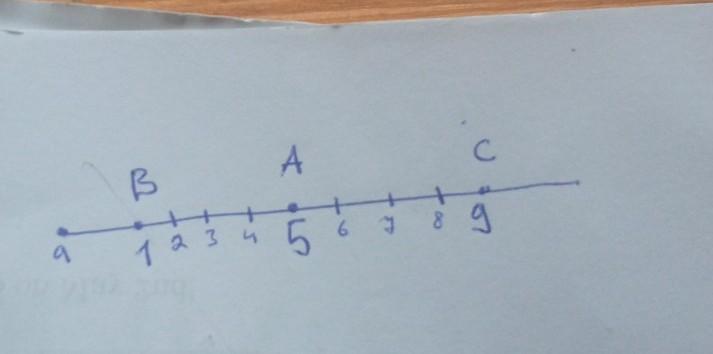 накреслити координатний промінь і позначити на ньому точки що відповідають:числу 5,числам віддаленим від числа 5 на 4 одиниці
