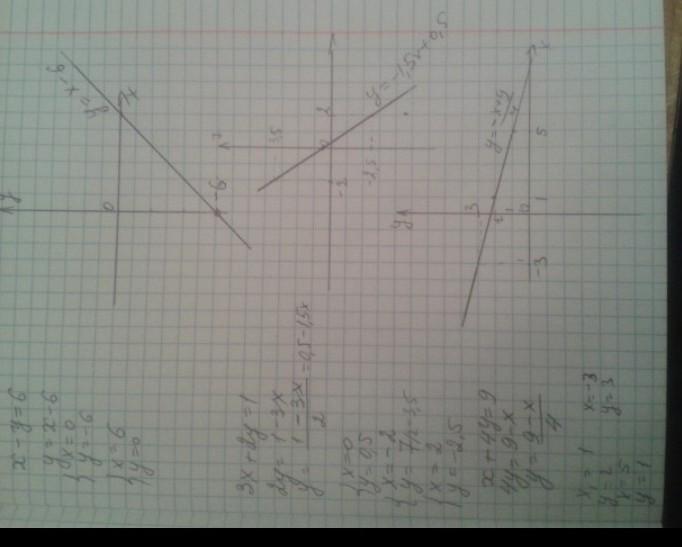 4) x-y=6;. 5) 3x + 2y = 1; 6) x + 4y= 9;