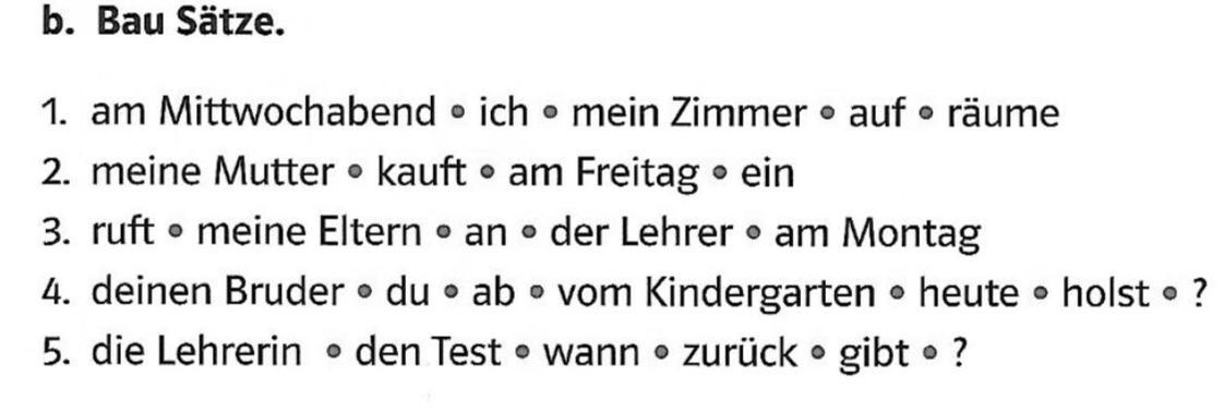 3. Meine Eltern ruft am Montag der Lehrer an.