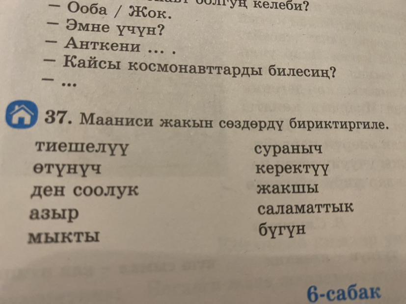 37. Мааниси жакын сөздөрдү бириктиргиле.