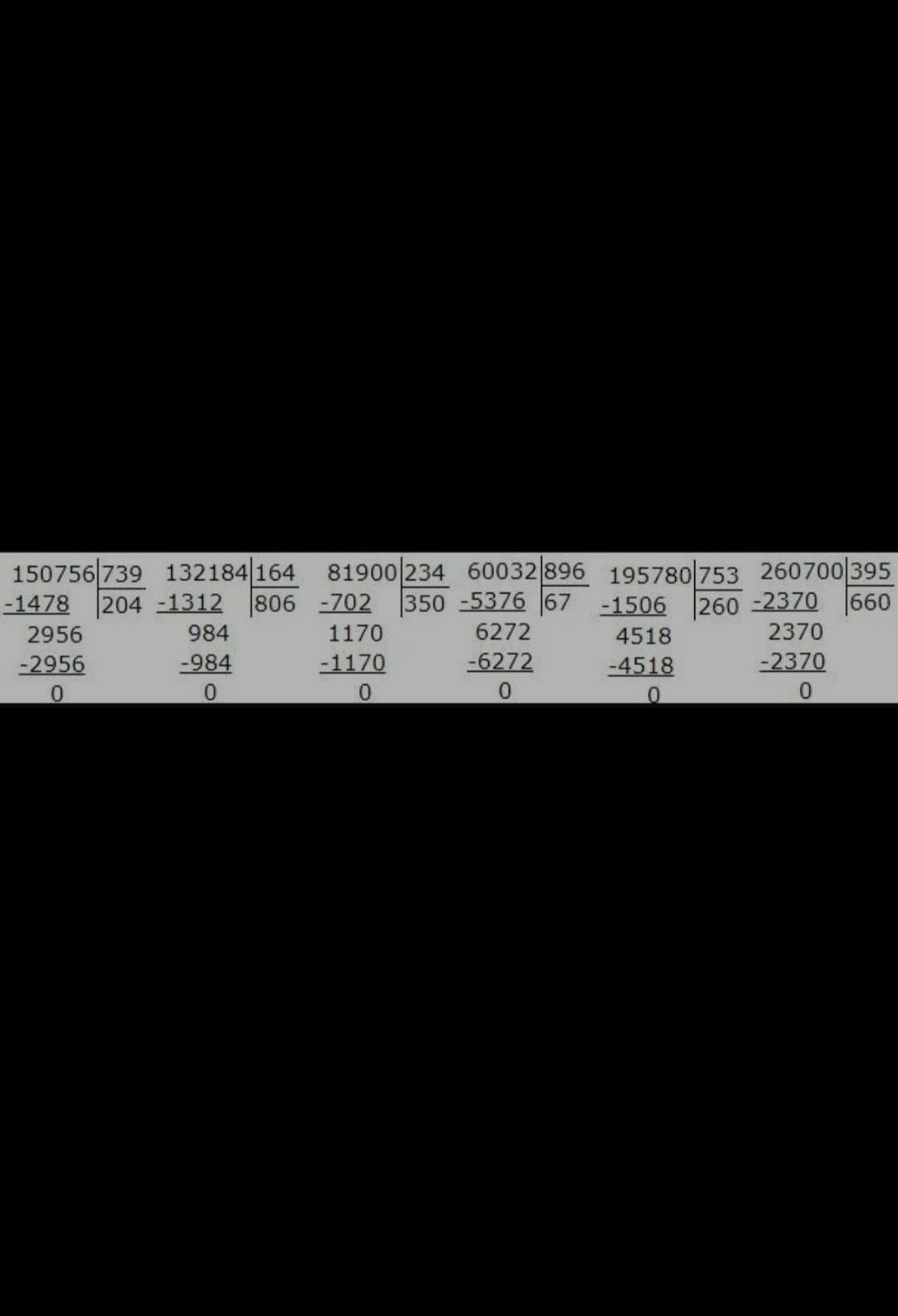 4 Вычисли. 150 756: 739 132 184 164 РАБОТА В ПАРЕ 81 900:234 60 032:896 195 780 753 260 700:395