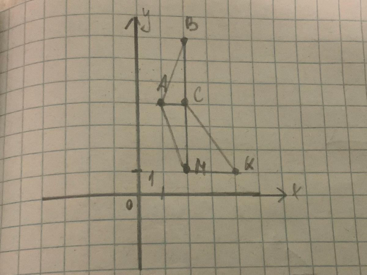 на координатній площині дано точки А(1;4) В(2:7) С(2:4) М(2:1) К(4;1). чи рівні трикутники АВС і АМС? а трикутники АВС і СМК?