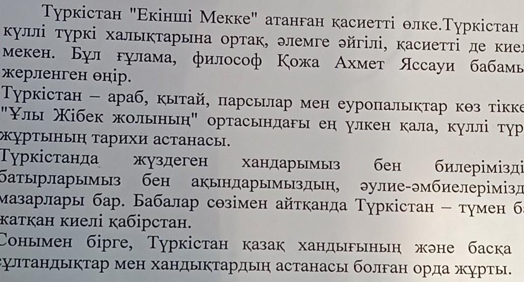 а) Мәтін ішінен бұрынғы өткен шақта тұрған 5 етістікті тер 16.) ) Болжалдык сан есімді тап. Онымен мысал келтір. 16.) ) Мәтiндегi сiлтеу, жалпылау есімдіктерін көрсет.Оларме эйлем құра.