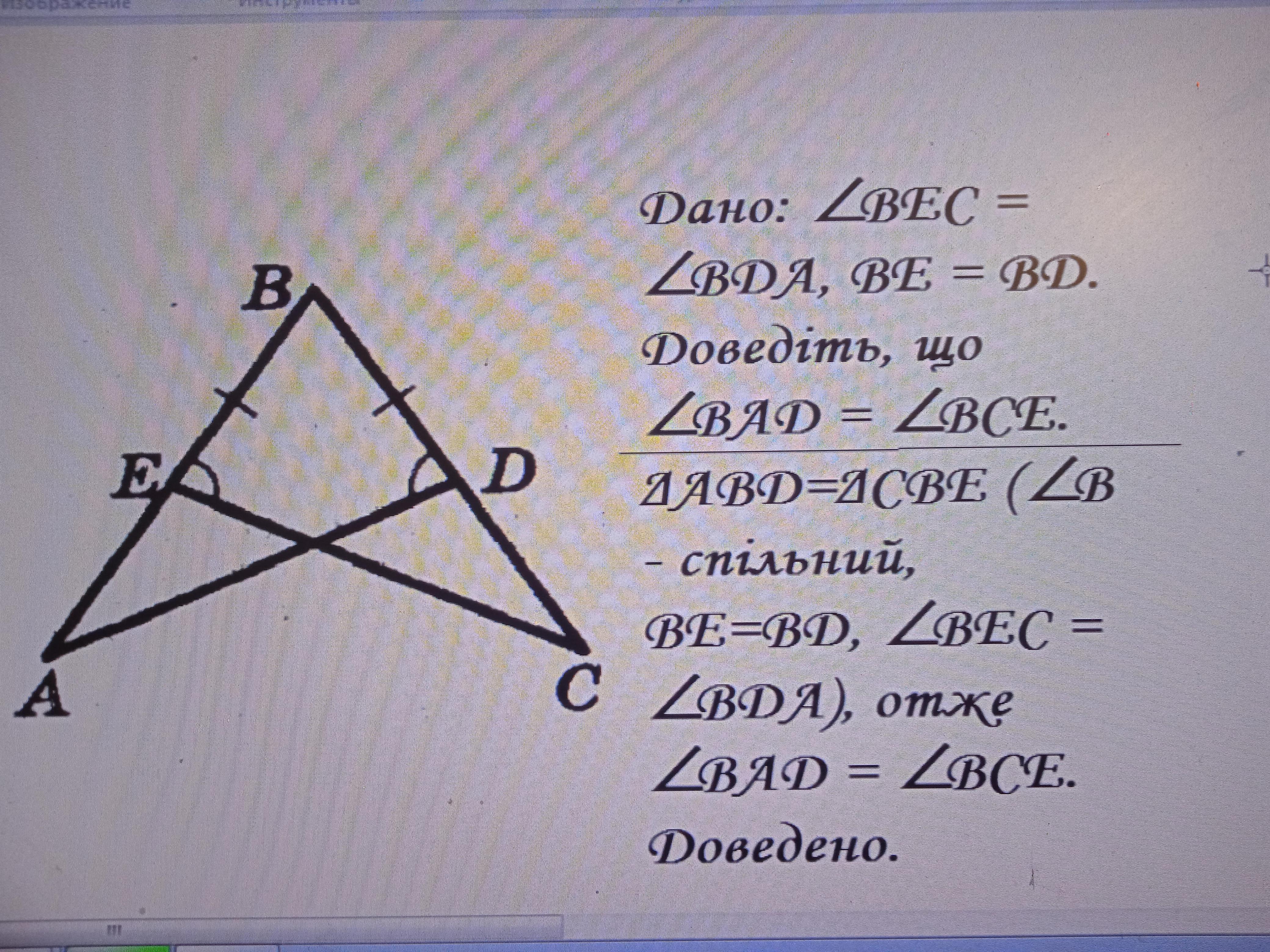 На рисунку ∠ВЕС = ∠ВОА, ВЕ = ВD. Доведіть, що ∠ВАD = ∠ВСЕ.