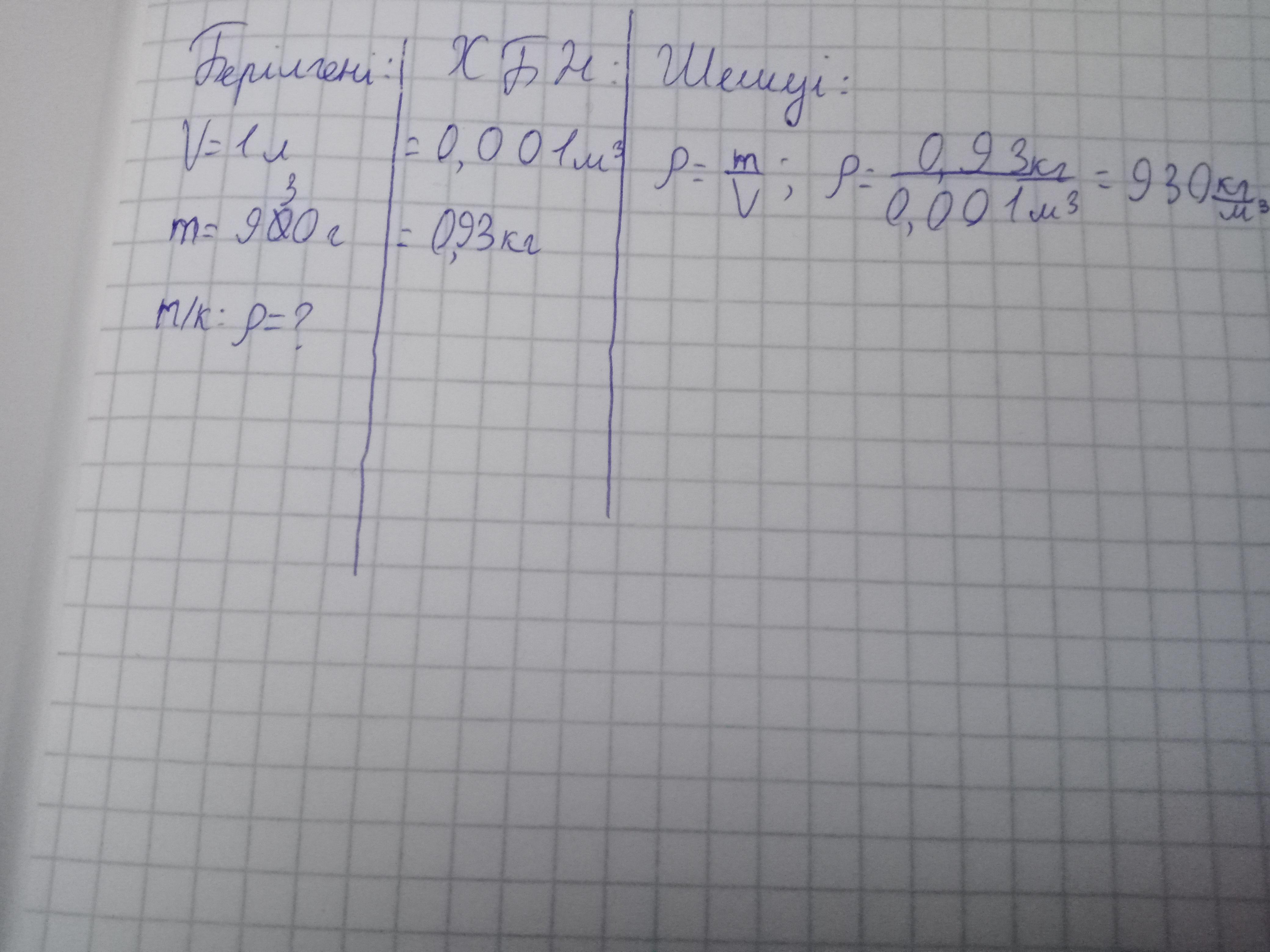 если вы переводите г в кг ,то 930 г =0.93кг ,плотность =масса/объем = 0.93/1=0.93