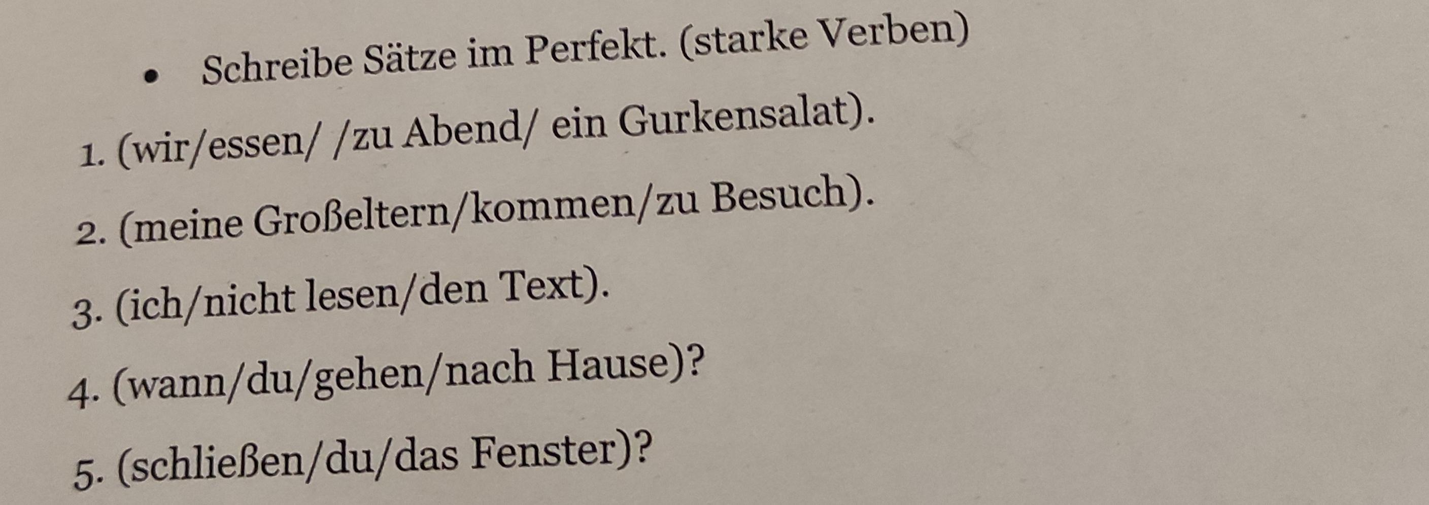 1. Wir haben zu Abend einen Gurkensalat gegessen.