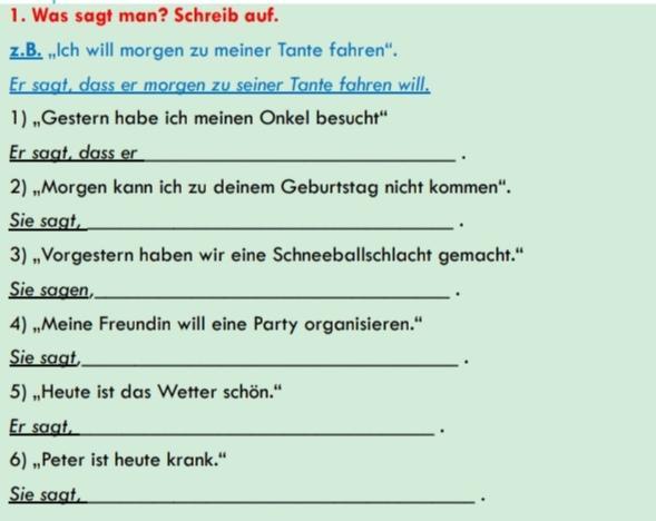 1. ..., dass er gestern seinen Onkel besucht hat.